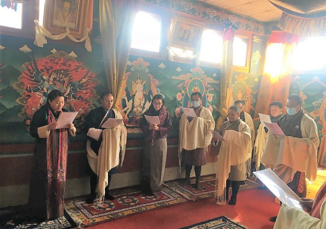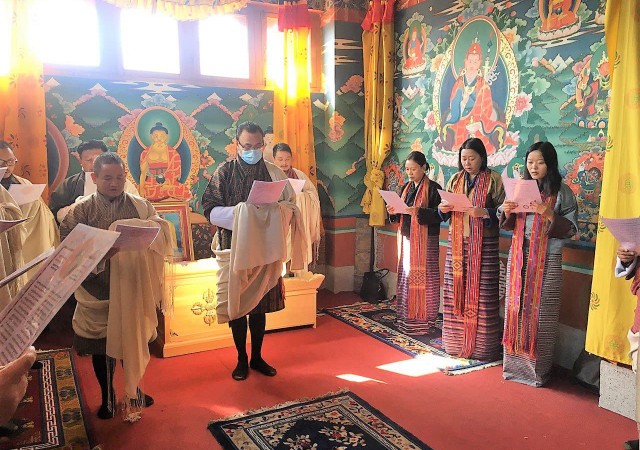 The RAA family offered butter lamps and recited the Zhabten at the RAA Head Office, Regional Offices and the Professional Development Centre to pray for His Majesty’s long life and good health.