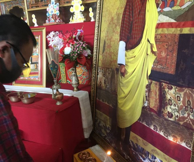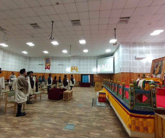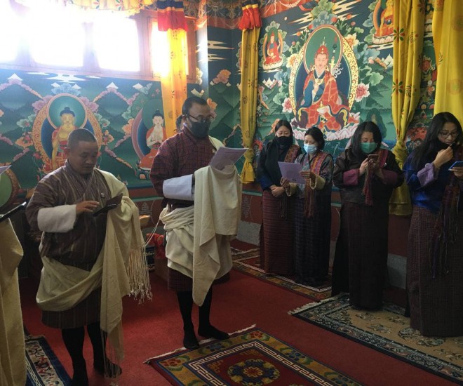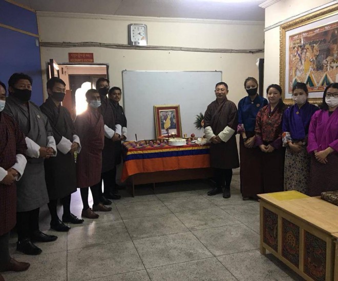 On the jubilant occasion of the 41st Birth Anniversary of His Majesty Jigme Khesar Namgyel Wangchuck, the Auditor General and officials of RAA at the HQ and four Regional Offices offered butter lamps and recited the Zhabten for His Majesty’s good health, long life and eternal happiness.