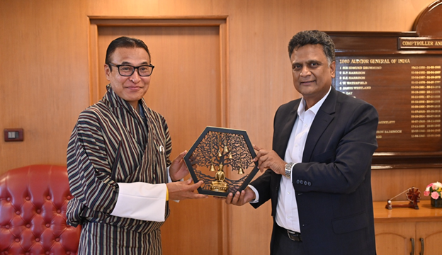 On his return from Casablanca, Morocco, after attending the Masterclass on “Leading SAI Institutional Change”, the Auditor General of Bhutan held a bilateral meeting with Shri K. Sanjay Murthy, Comptroller & Auditor General of India, on 3 October 2025.