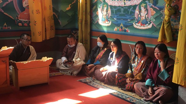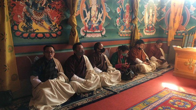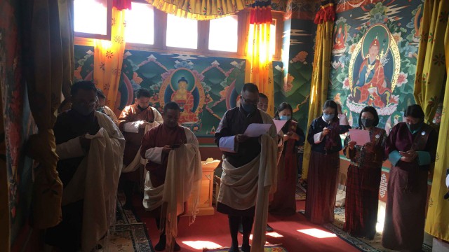 They recited the Zhabten and offered prayers for His Majesty’s long, healthy life and a peaceful, prosperous golden reign under His Majesty’s wisdom and benevolence.