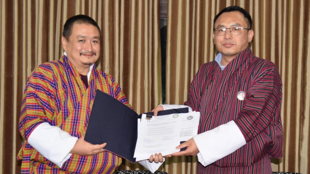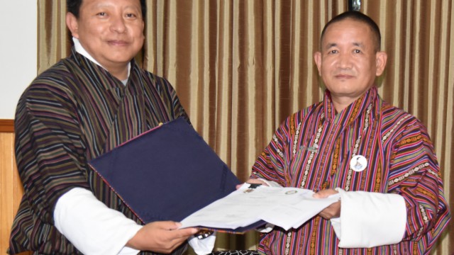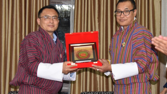 The Hon. Auditor General presented tokens of appreciation for their dedicated service to the RAA of more than 26 years and 24 years, respectively. The charges for Directorate of Services were handed over to Minjur Dorji, DAG and charges for Department of Sectoral Audits to Dorji Wangchuk, DAG.