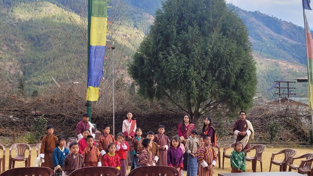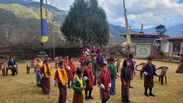 The Royal Audit Authority welcomed a group of children coordinated by the Tarayana Foundation to recite Lolay at the RAA Office Campus on 3rd January 2024.